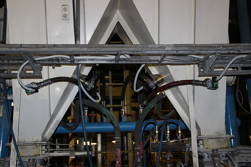 Zásobník mletého vápence kotle K80 má dva menší výsypy, na každém výsypu byly aplikovány 2 ks pulzních ventilů typu VPV-40. Systém pulzních ventilů v tomto rozsahu eliminuje nálepy sypkého materiálů na vnitřních stěnách zásobníku a zajišťuje tak bezproblémový tok materiálu.