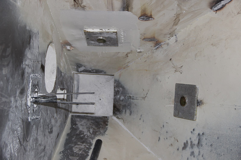 Řešení problémů s tokem mletého vápence ve výsypné části zásobníku kotle K80. Neúčinný systém čeřících desek byl demontován a nahrazen systémem pulzních ventilů. Problémy s tokem mletého vápence byly vyřešeny.